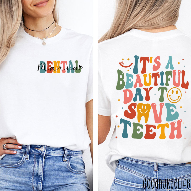 Personalized Name It's A Good Day To Save Teeth Dental Two Sided T-Shirt
