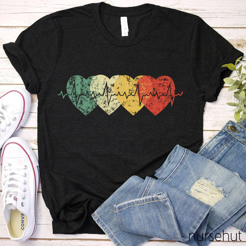 Flag Heart ECG Stethoscope Nurse T-Shirt