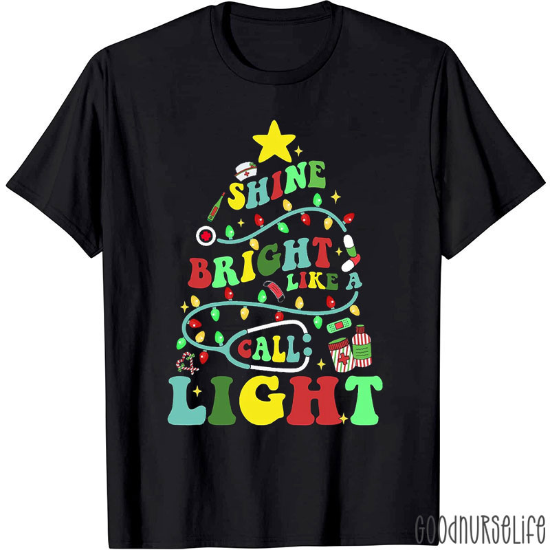 Shine Bright Like A Call Light Festive Tree Nurse T-Shirt