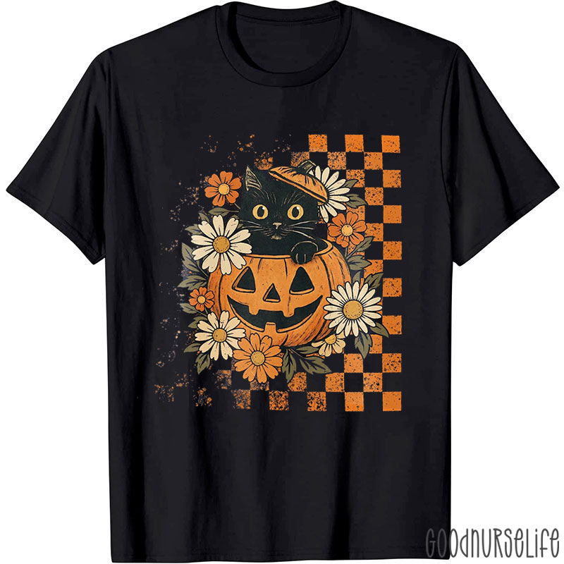 Halloween Cat In Pumpkin Nurse T-Shirt