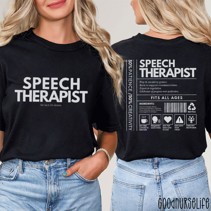 Speech Therapist See Back For Details Two Sided T-Shirt