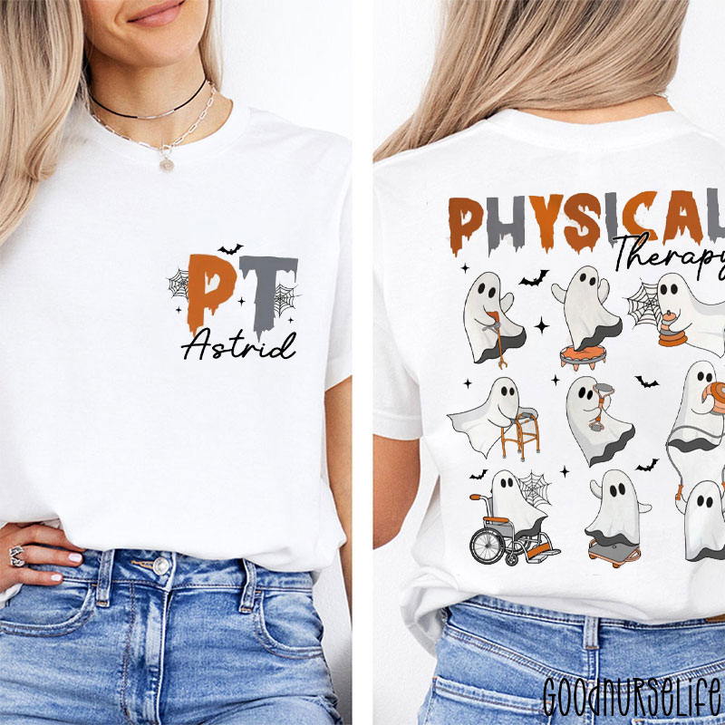 Personalized Physical Therapy For Cute Halloween Ghosts Two Sided T-Shirt