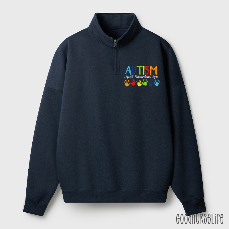 Embroidered Autism Accept Understand Love Quarter Zip Sweatshirt