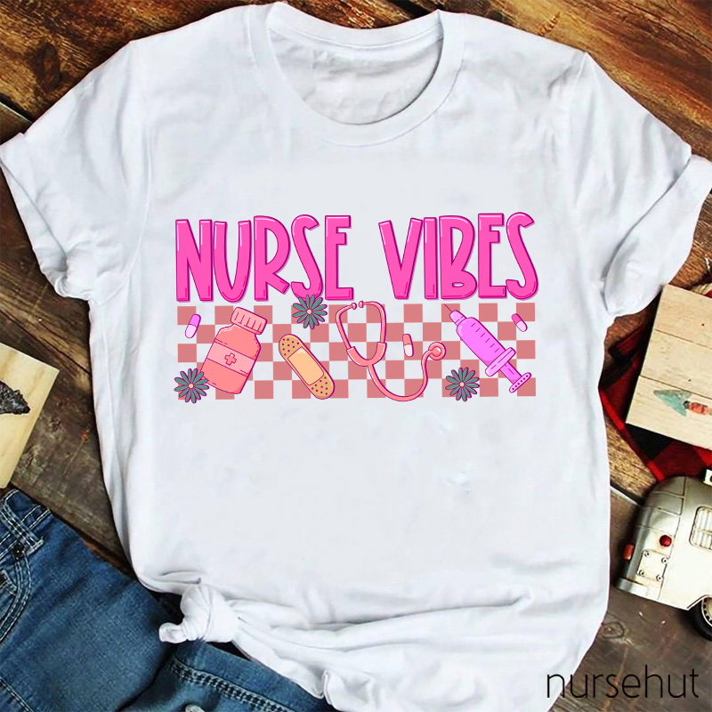 Nurse Life Pink Checkerboard Nurse T-Shirt