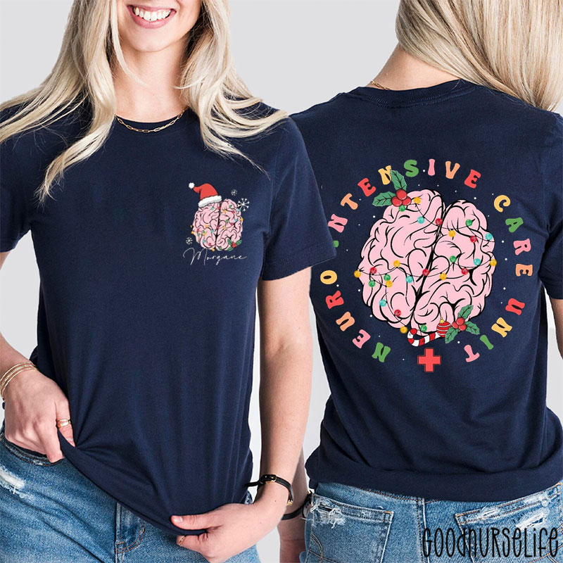 Personalized Neuro Intensive Care Unit Festive Decorated Brain Two Sided T-Shirt