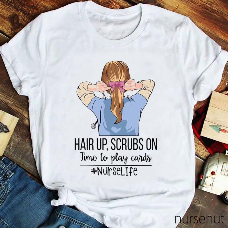 Hair Up Scrubs On Nurse T-Shirt
