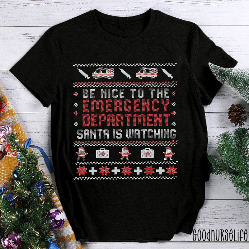 Be Nice To The ER Santa Is Watching Nurse T-shirt