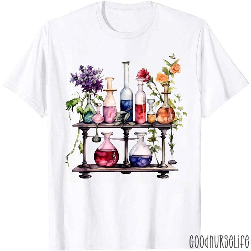 Floral Beakers Laboratory Lab Tech T-Shirt