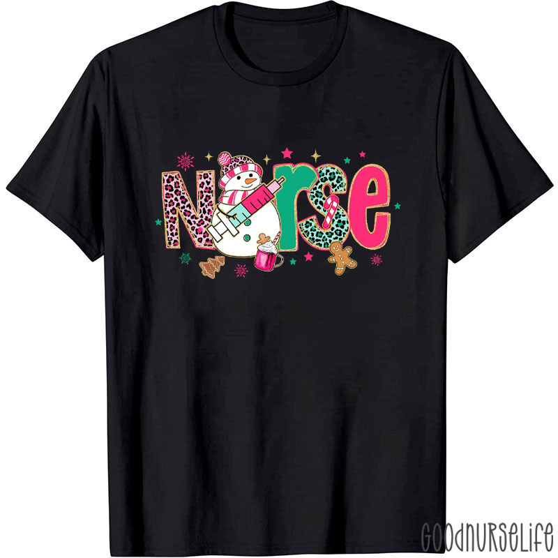 Festive Nurse Snowman With Syringe Nurse T-Shirt