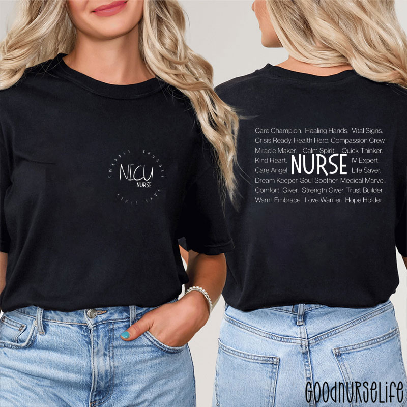 Nicu Nurse Swaddle Snuggle Save Lives Two Sided T-Shirt
