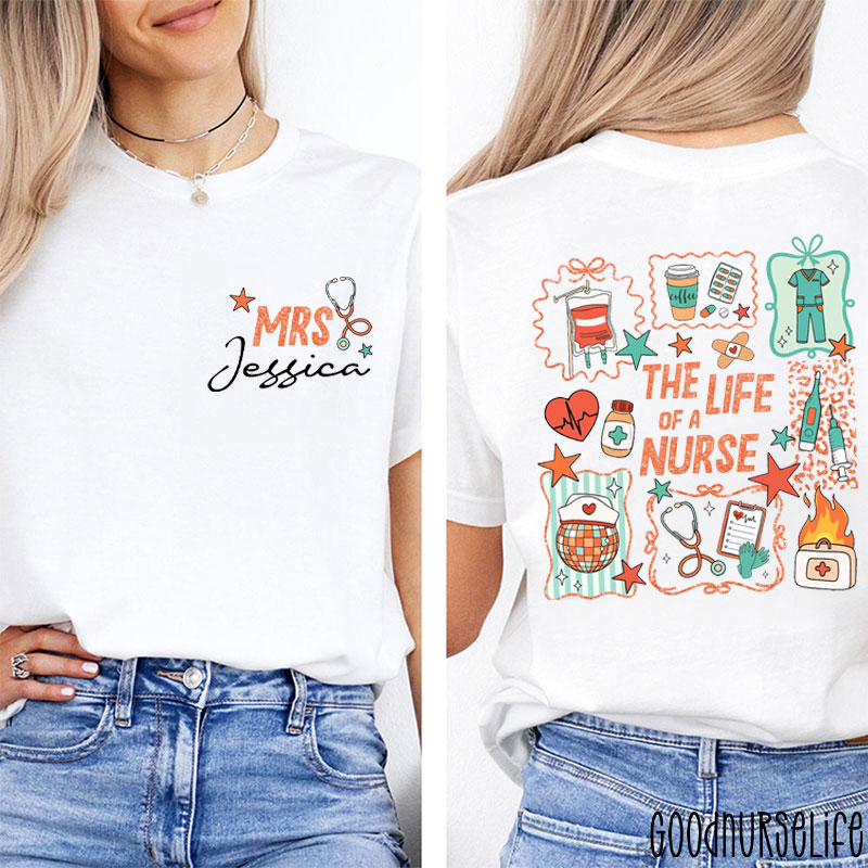 Personalized The Life Of A Nurse Vibrant Playful Nursing Daily Moments Nurse Two Sided T-Shirt