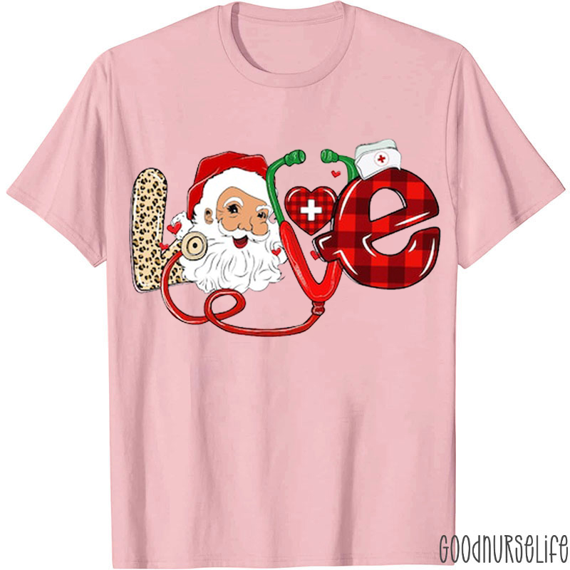 Love Type Santa Leopard Print Nurse Christmas T-Shirt