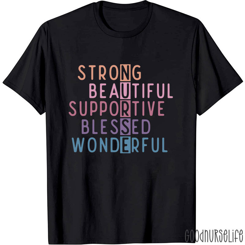 Strong Beautiful Supportive Blessed Wonderful Nurse T-Shirt