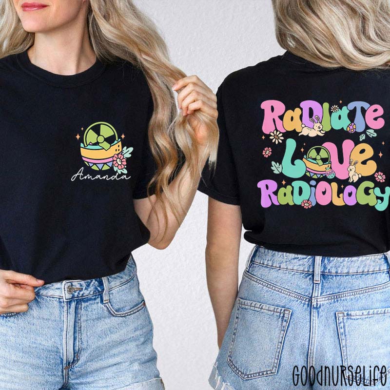 Personalized Radiate Love Radiology Easter Nurse Two Sided T-Shirt
