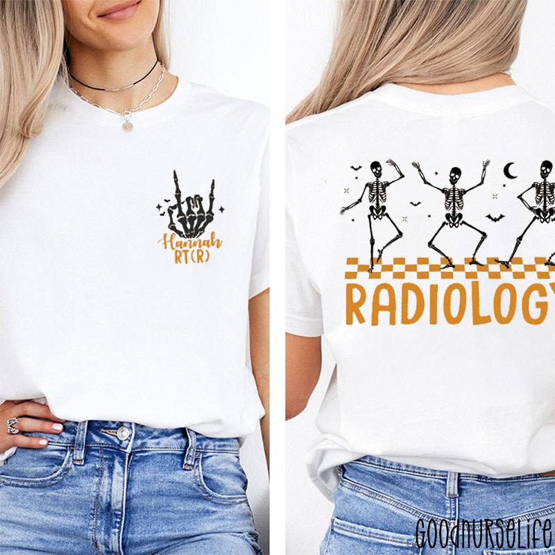 Personalized Halloween Themed Radiology Skeletons Two Sided T-Shirt