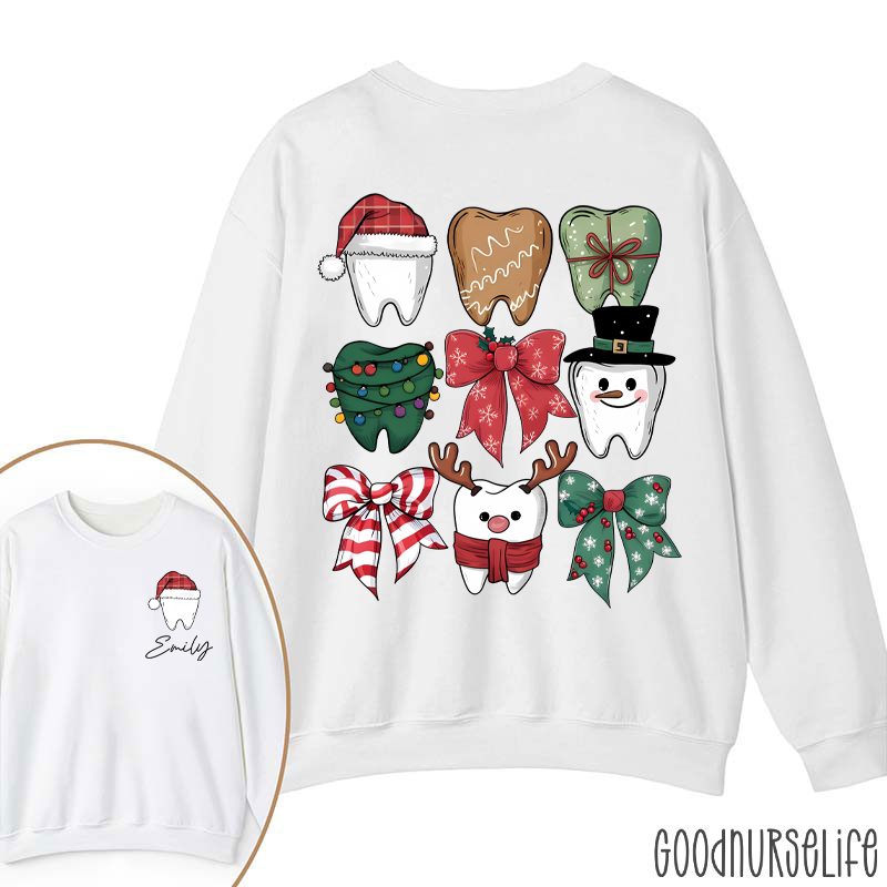 Personalized Christmas Dental Festive Tooth Nurse Two Sided Sweatshirt