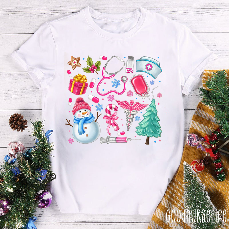Personalized Cute Christmas Icons Nurse T-shirt