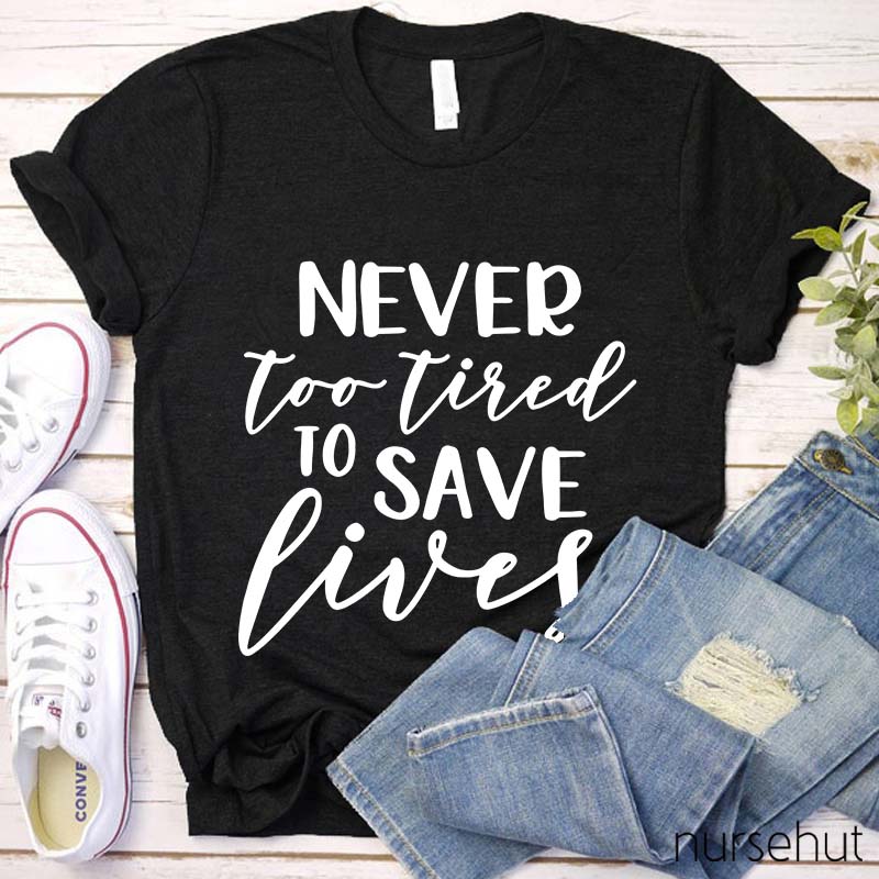 Never Too Tired To Save Lives Nurse T-Shirt