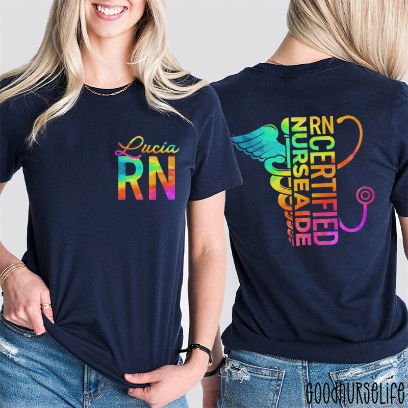 Personalized Name RN Certified Nurse Aide Nurse Two Sided T-Shirt