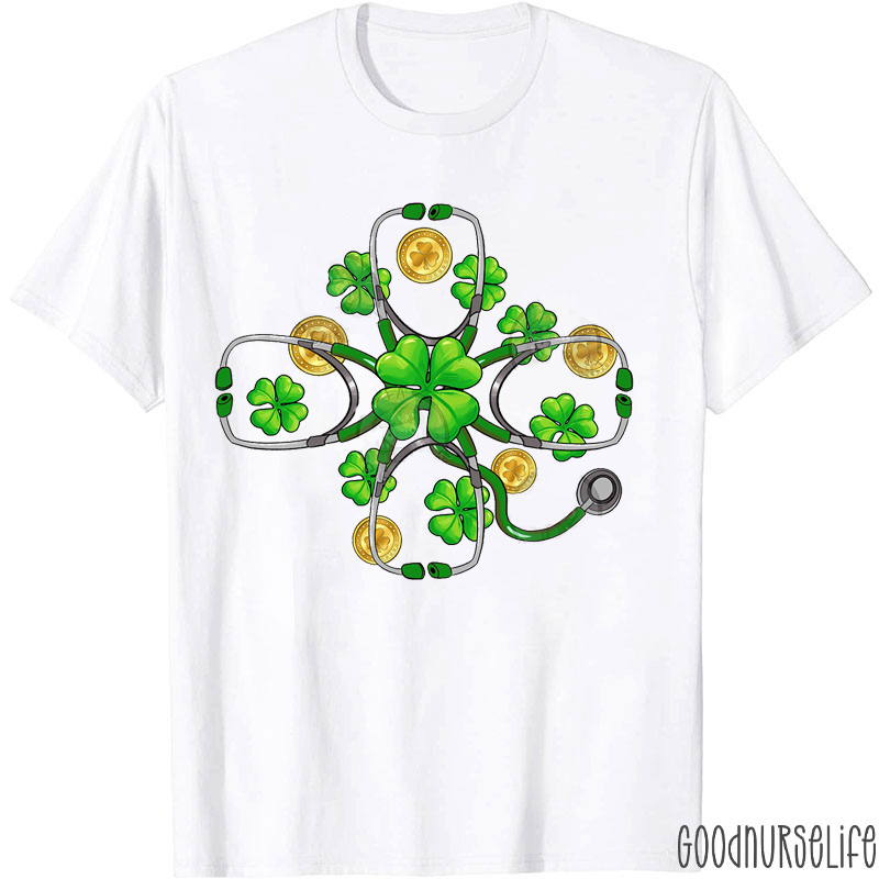 Stethoscope Four Leaf Clover St. Patrick's Day Nurse T-Shirt