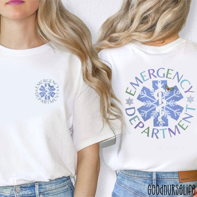 Emergency Room Christmas Snowflake Caduceus ED Nurse Two Sided T-Shirt
