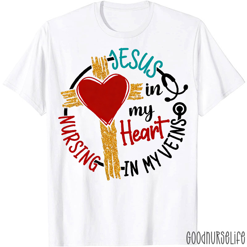 Jesus In My Heart Nursing In My Veins T-shirt