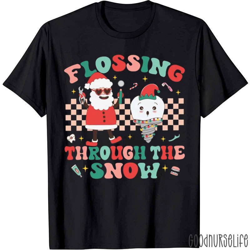 Flossing Through The Snow Christmas Dentist T-Shirt