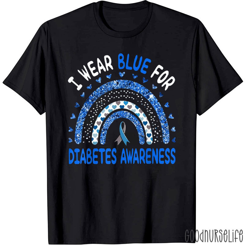 Wear Blue for Diabetes Awareness Glitter Rainbow Nurse T-Shirt