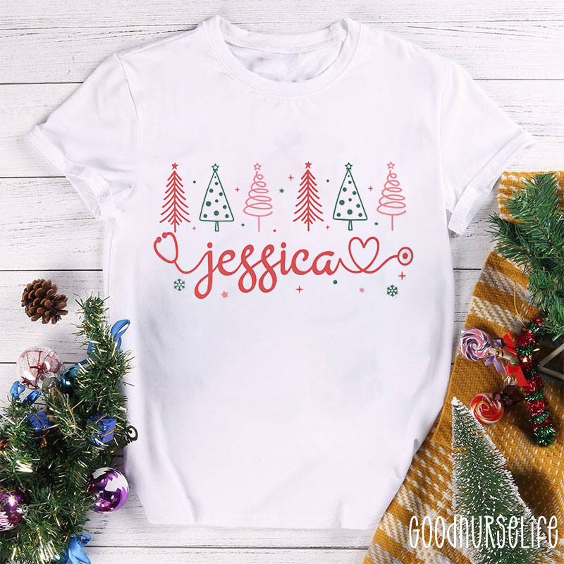 Personalized Name Christmas Tree Nurse T-shirt
