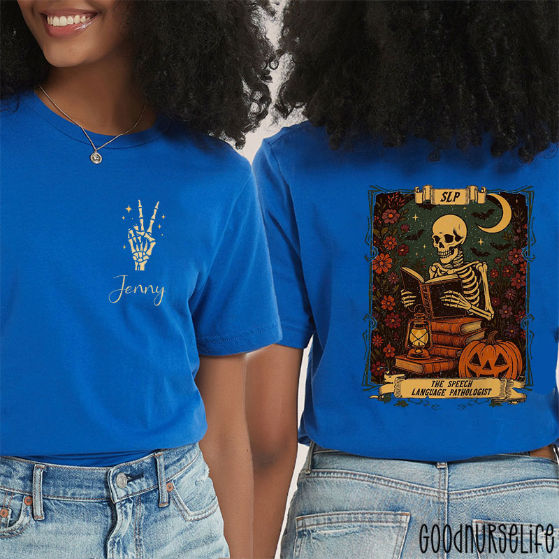 Personalized Halloween Skeleton SLP Two Sided T-Shirt