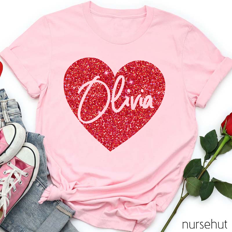 Personalized Shining Red Heart Nurse T-Shirt