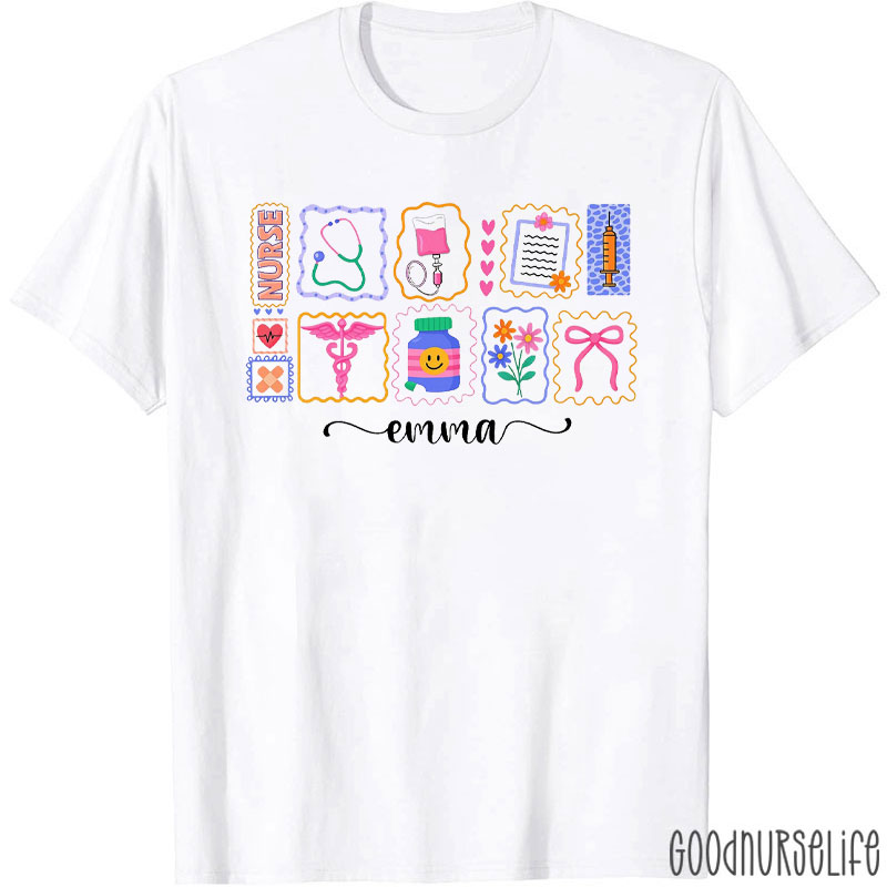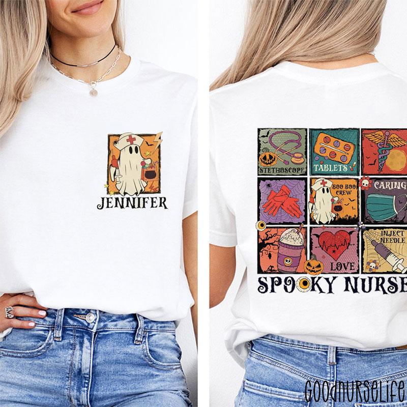 Personalized Spooky Medical Icons Collage Nurse Two Sided T-Shirt