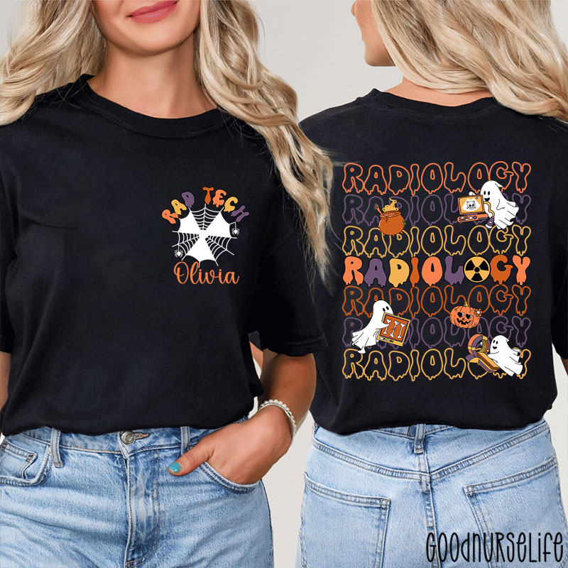 Personalized Halloween Spider Web Ghost Radiology Two Sided T-Shirt