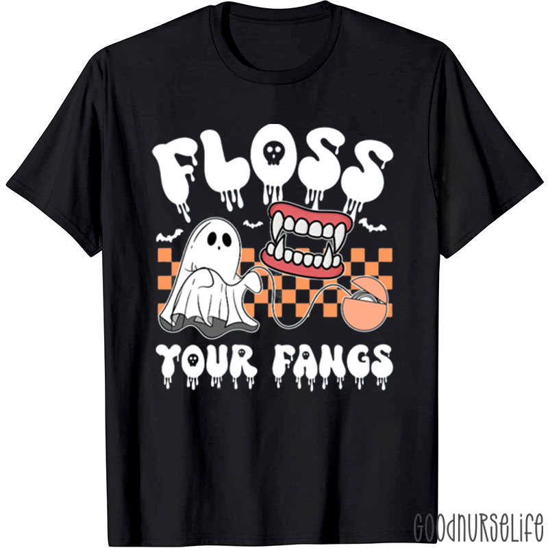 Halloween Chessboard Ghost Floss Your Fangs T-Shirt