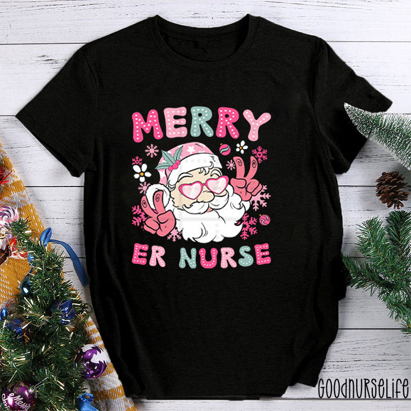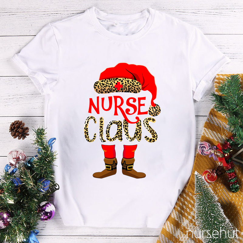 Faux Yarn Santa Pink Hat Nurse T-shirt
