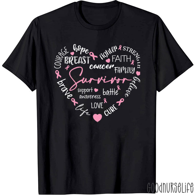 Breast Cancer Survivor Heart Words Art T-Shirt