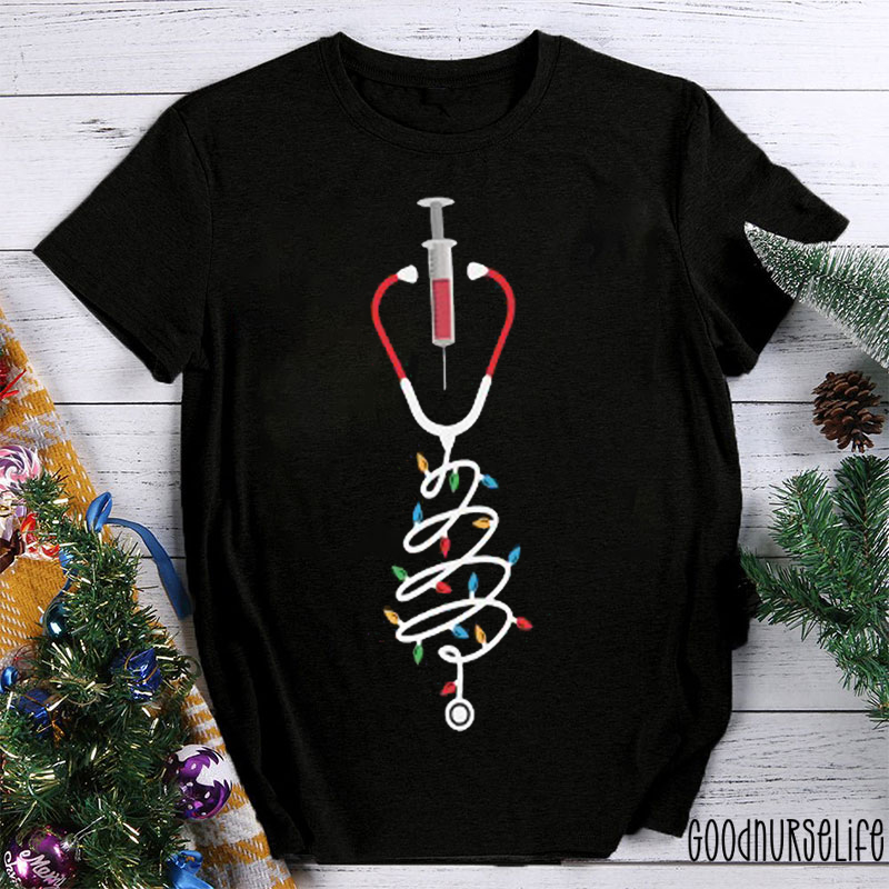 Syringes And Stethoscope Christmas Tree Christmas Nurse T-Shirt