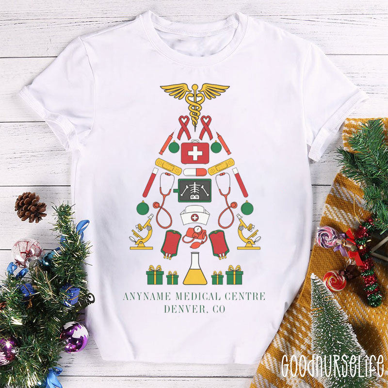 Personalized Medical Center Christmas Tree Nurse T-Shirt