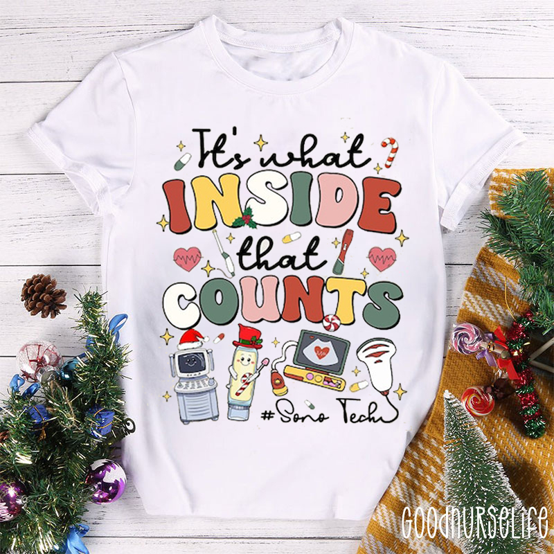 It's What Inside That Counts Sono Tech Nurse Christmas T-Shirt