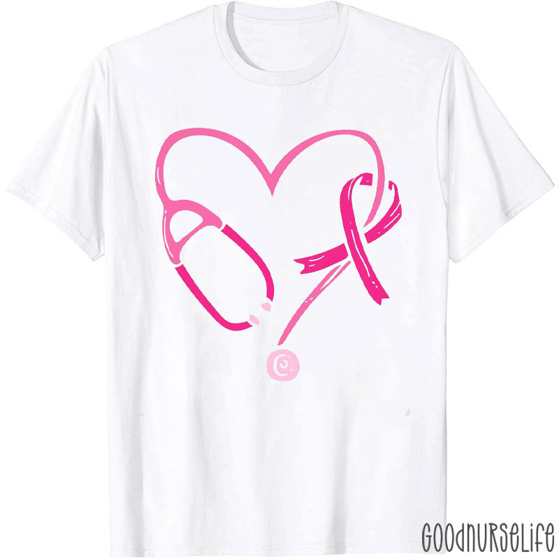 Breast Cancer Stethoscope And Ribbon Heart Nurse T-Shirt