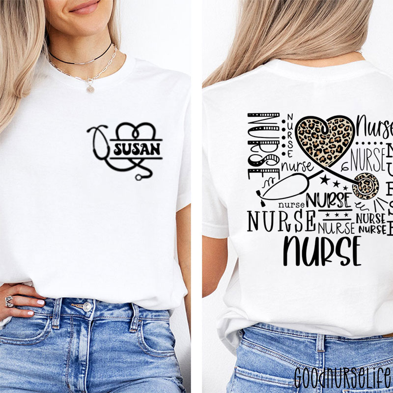 Personalized Funny Heart Nursing School Nurse Two Sided T-Shirt