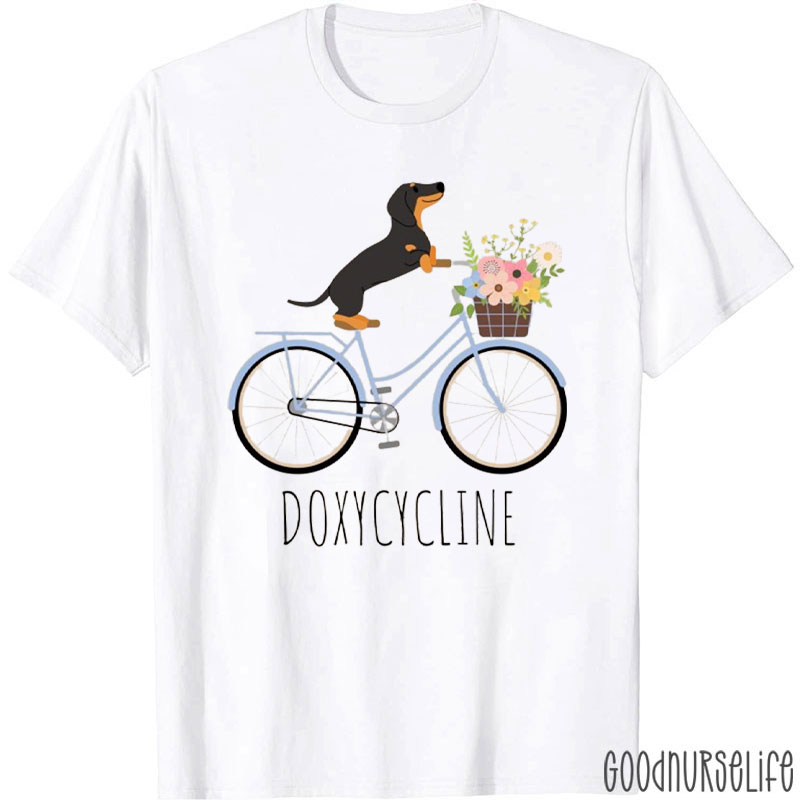 Dachshund On A Bicycle Doxycycline Pharmacy Nurse T-Shirt