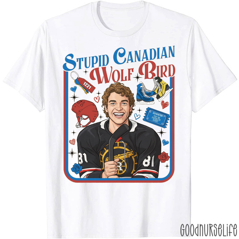 Stupid Canadian Wolf Bird Hockey T-shirt
