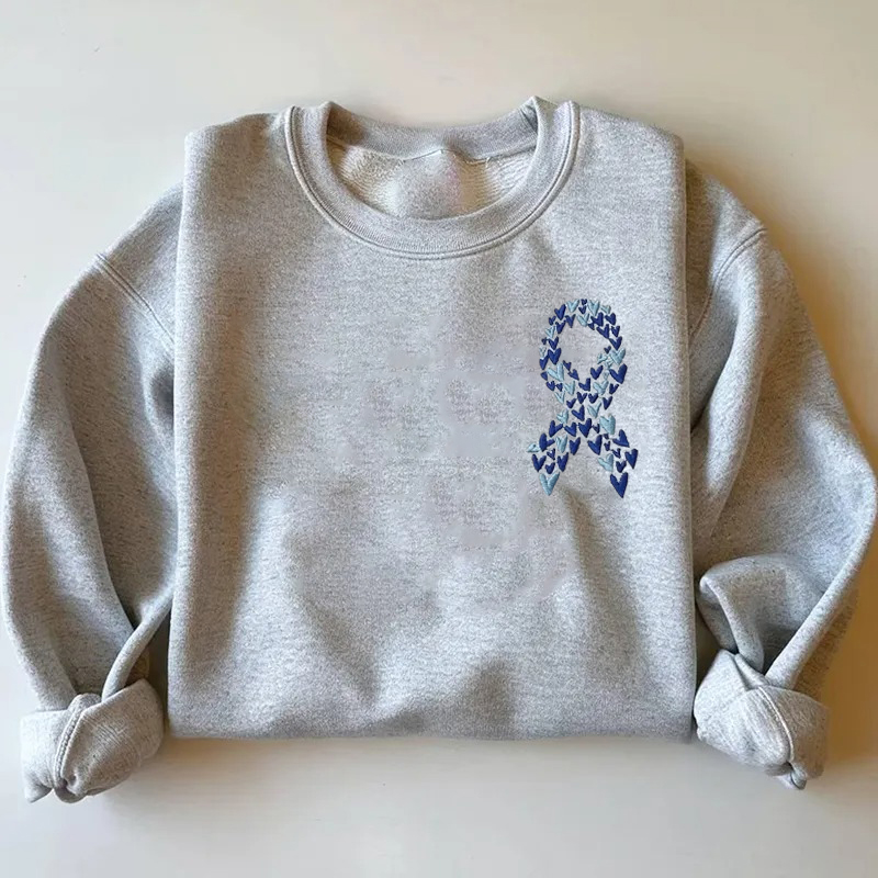 Autism Awareness Embroidered Heart Ribbon Sweatshirt