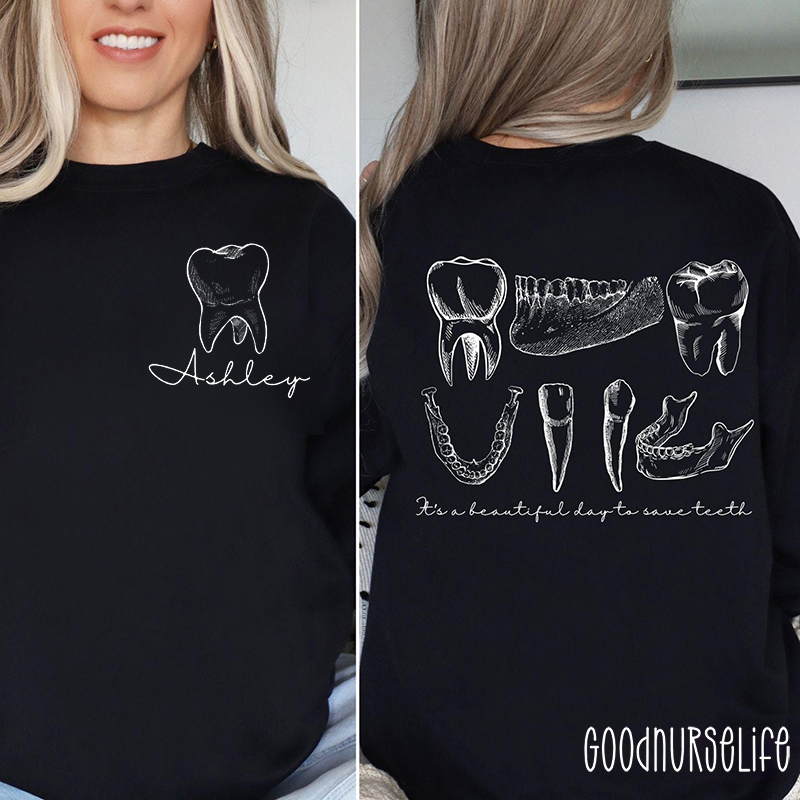 Personalized Name It's A Beautiful Day To Save Teeth Dental Two Sided T-Shirt