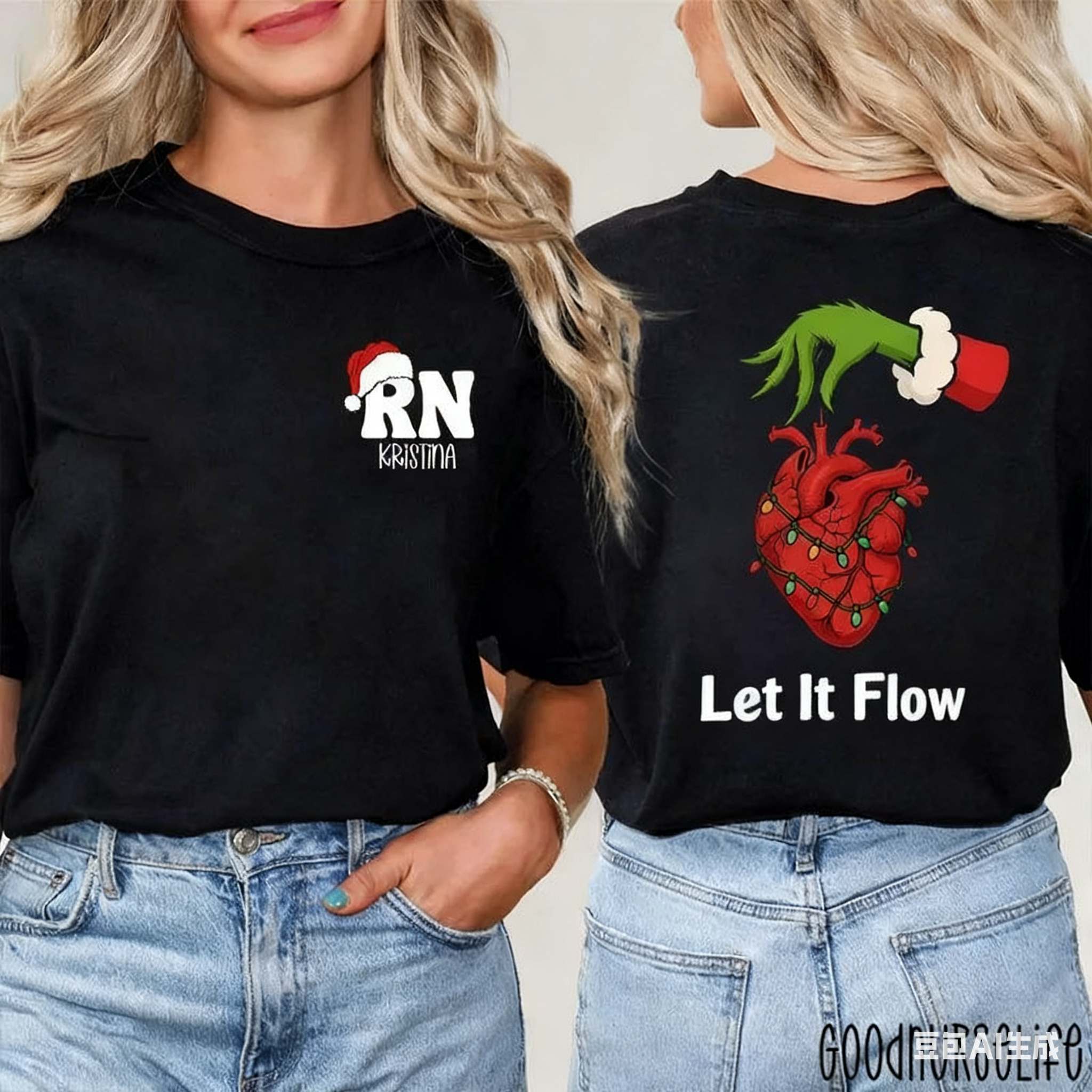 Personalized Hand And Festive Heart Let It Flow Nurse Two Sided T-Shirt