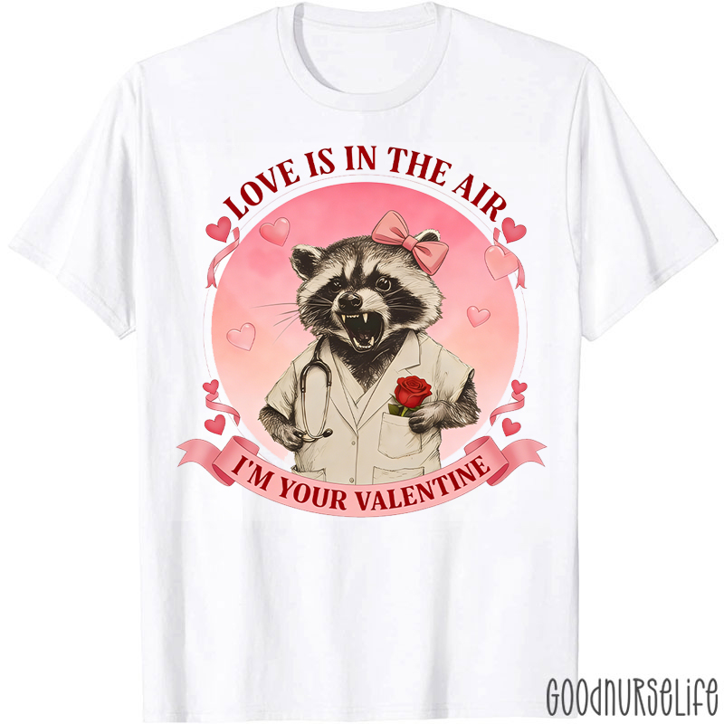 Love Is In The Air I'm Your Valentine Raccoon Nurse T-shirt