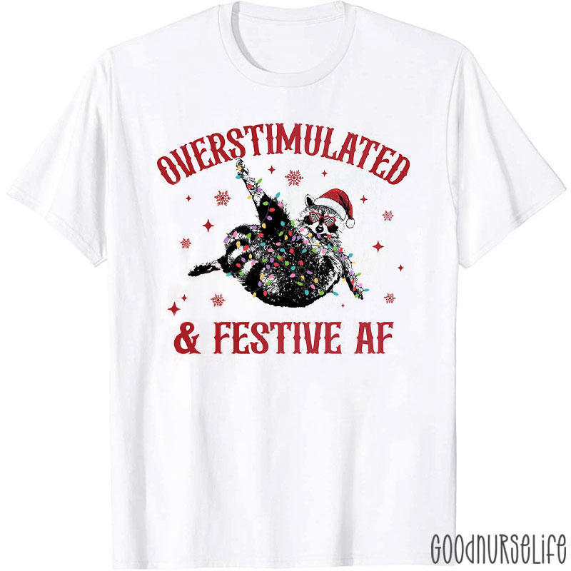 Overstimulated And Festive Af Christmas Lights Holiday Nurse T-Shirt