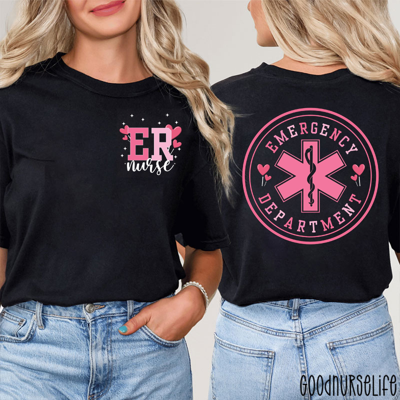 Emergency Department Valentine Nurse Two Sided T-Shirt