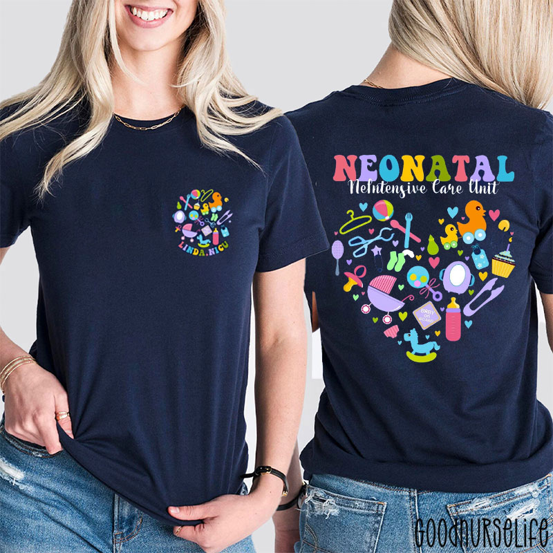 Personalized Cute Heart Neonatal Intensive Care Unit Two Sided T-Shirt